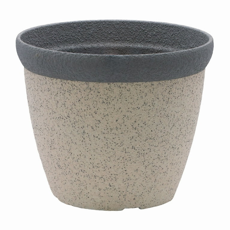 2 Pack 13 Inch Round Two Tone Faux Stone Resin Flower Pot Garden Potted Planter Indoor Outdoor Grey And White Walmart Com